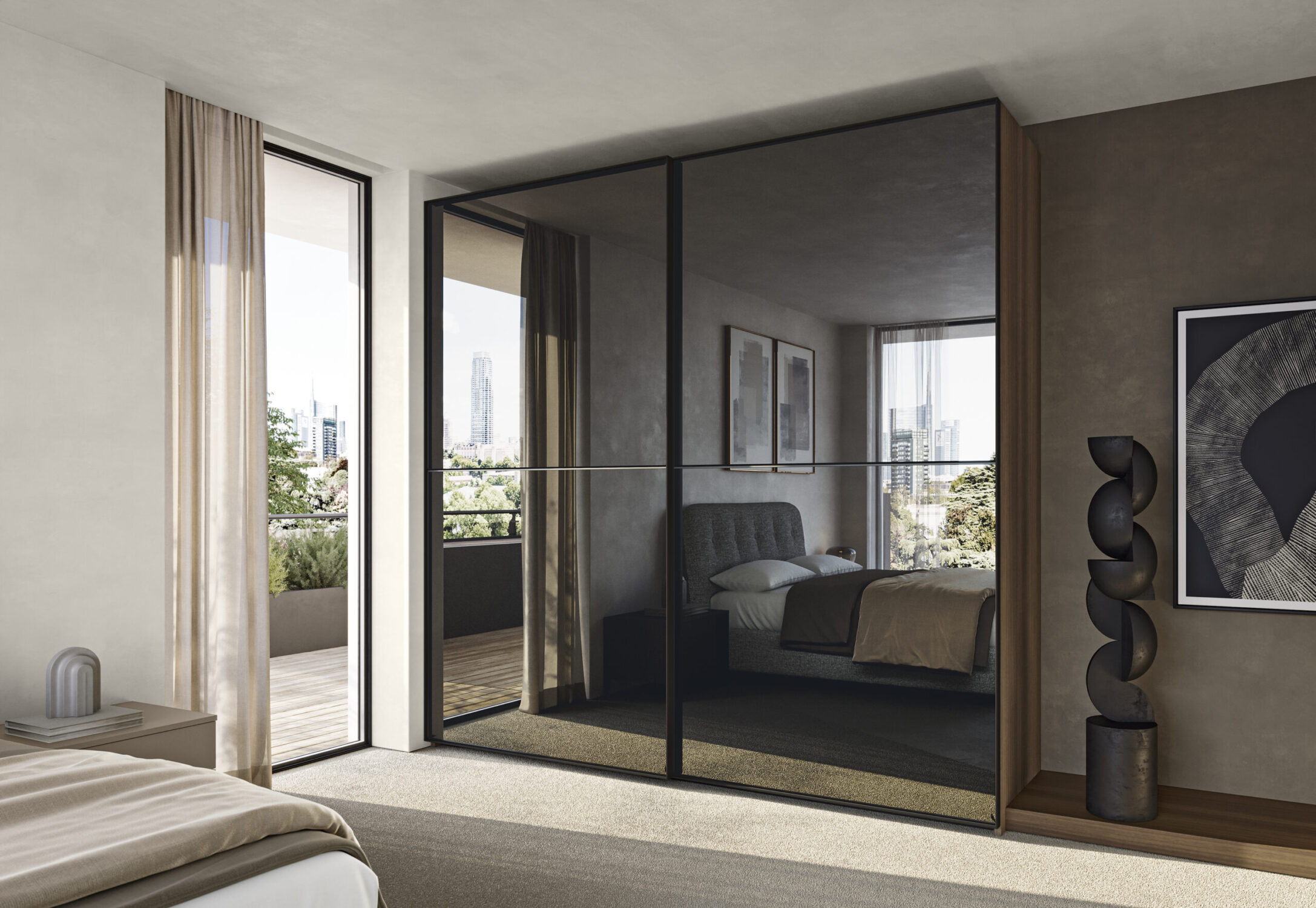 La parola chiave della collezione è modularità. I nuovi elementi, come gli armadi Concreta e Duo, offrono soluzioni personalizzabili e intelligenti, ideali per adattarsi a esigenze in continuo cambiamento. Perfetti per una camera da letto intelligente, si distinguono per ante scorrevoli, vani contenitivi e anche vano porta TV integrato, per un design che rispetta l’equilibrio tra estetica e funzione.